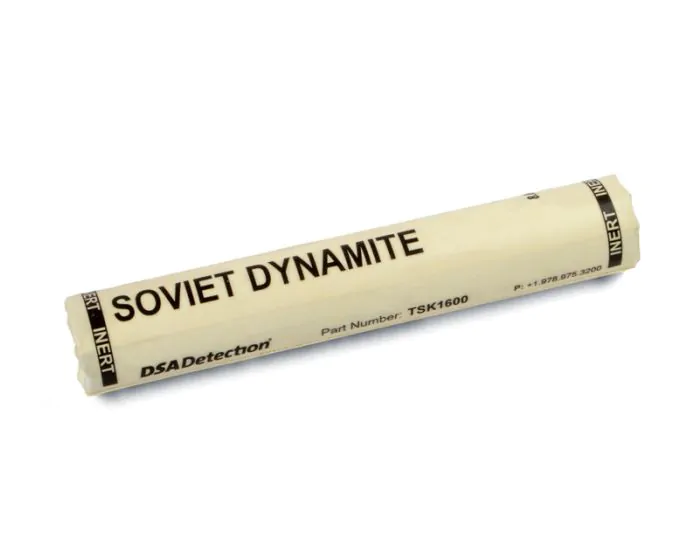 This training aid simulates Soviet dynamite. The explosive simulant is visually correct and engineered to have the same density and effective atomic number (Zeff) as the real explosive threat.