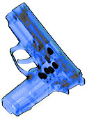 This firearm training aid is X-ray correct and is designed to accurately represent a compact-sized pistol. It is engineered to have the same density, effective atomic number (Zeff), and weight as an actual compact pistol. This item contains the correct metallic mass to generate an alarm in both hand-held and walk-through metal detectors.