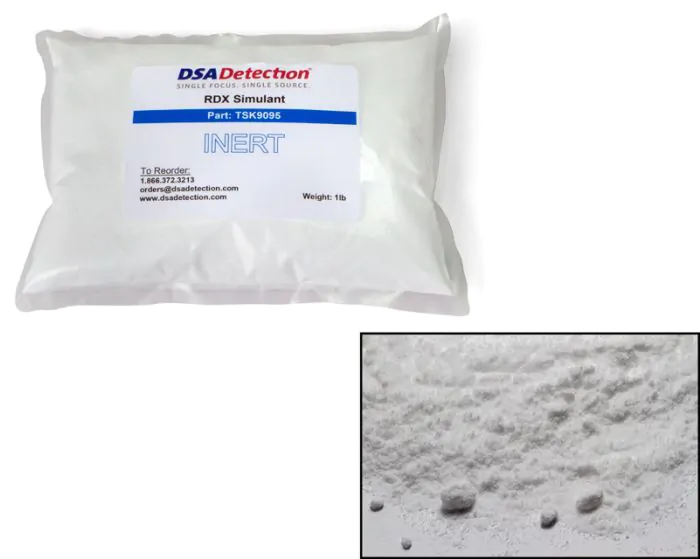This training aid simulates RDX. The explosive simulant is visually correct and engineered to have the same density and effective atomic number (Zeff) as the real explosive threat. This simulant can also be purchased in custom/bulk quantities or packaging.